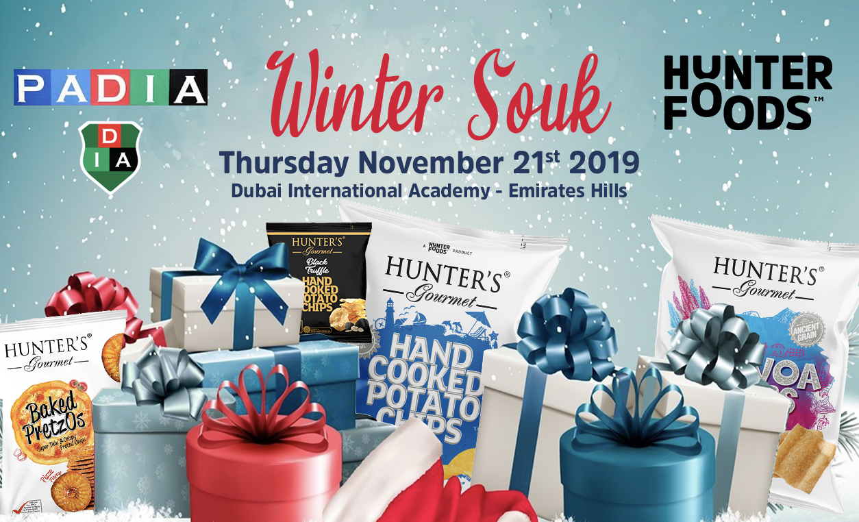 Get ready for Winter Souk at Dubai International Academy on Thursday November 21st, 2019! With their famous raffle draw, musical entertainment by the students, and Hunter Foods’ Stall where we will present our school/kids friendly products, you will get into the holiday spirit straight away. Come and have fun & joy! Timings: 1 to 5 pm www.diadubai.com/about-us/parents-association/events/