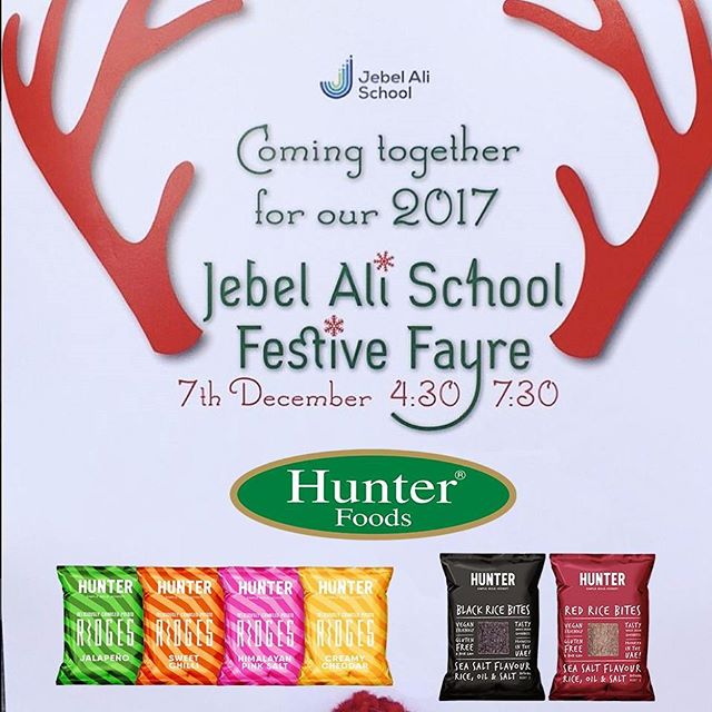 Get ready to meet us at the Festive Fayre at Jebel Ali School on December 7th, 2017 from 4.30pm till 7.30pm! Expect Raffles, musical performances, tombolas and meeting Santa. Come and join the fun while tasting our Hunter Foods kids friendly products. Get into the holiday spirit straight away. Timings: From 4.30pm till 7.30pm www.jebelalischool.org/school-events-calendar/