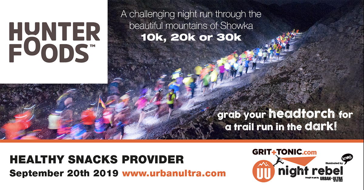 The single stage 10k, 20k or 30k Grit + Tonic Night Rebel illuminated by Knog trail run will start and finish at Wadi Showka.