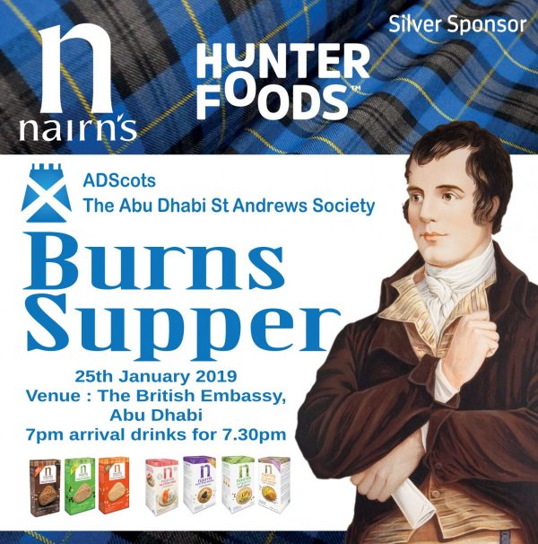 Hunter Foods is proud to sponsor The Abu Dhabi St. Andrews Society Burns Supper together with Nairn’s, and celebrating the life and works of legendary Scottish poet Robert Burns.  Not every wordsmith can unite a nation in the way quite like Robert Burns has done with Scotland. And so it is that on January 25 that the 18th century poet is feted by Scots around the world, including right here in Abu Dhabi. Nairn’s has a long oaty heritage and has been baking oatcakes since 1888 from wholegrain oats lovingly grown in the Scottish Borders. Hunter’s Collection is delighted to welcome Nairn’s to the Hunter Foods family and to bring their delicious oatcakes further afield to some of your favourite stores in the UAE. Containing no artificial colourings, flavourings or preservatives, these tasty snacks are perfect for the whole family to enjoy. Hunter Foods is a leading snacks and foods manufacturer, packer, importer and distributor, headquartered in Dubai, U.A.E. Established in 1985, Hunter Foods produces a wide range of speciality, gourmet and “Better for You” snacks and foods under its own brands, and distributes other international power brands.